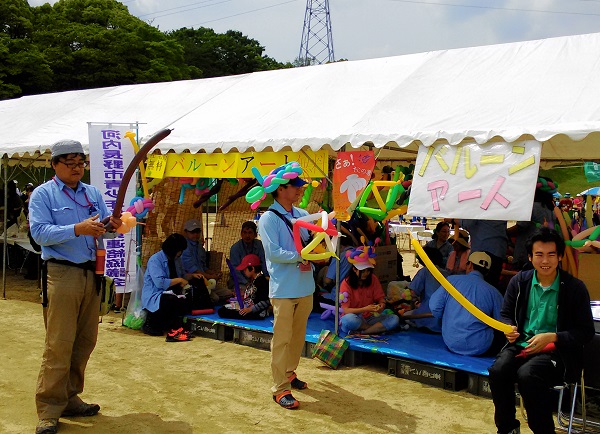 気を取り直して祭りが始まると、焼きそば・フランクフルトは完売、バルーンアートも最後まで大賑わい、例年どおりたくさんのお客様とふれあうこと出来ました。
